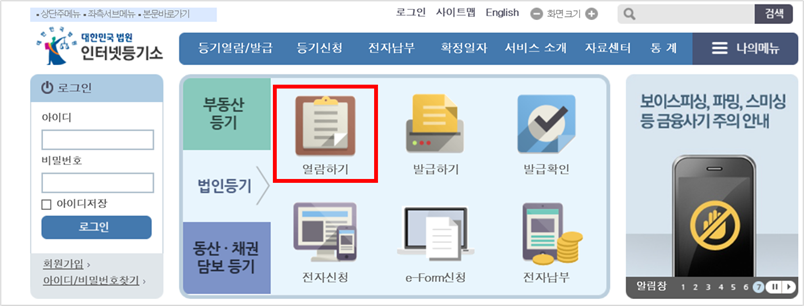 타업체 등기증명사항보는 법은, 내 법인의 등기사항증명을 열람하는 방법도 동일합니다.