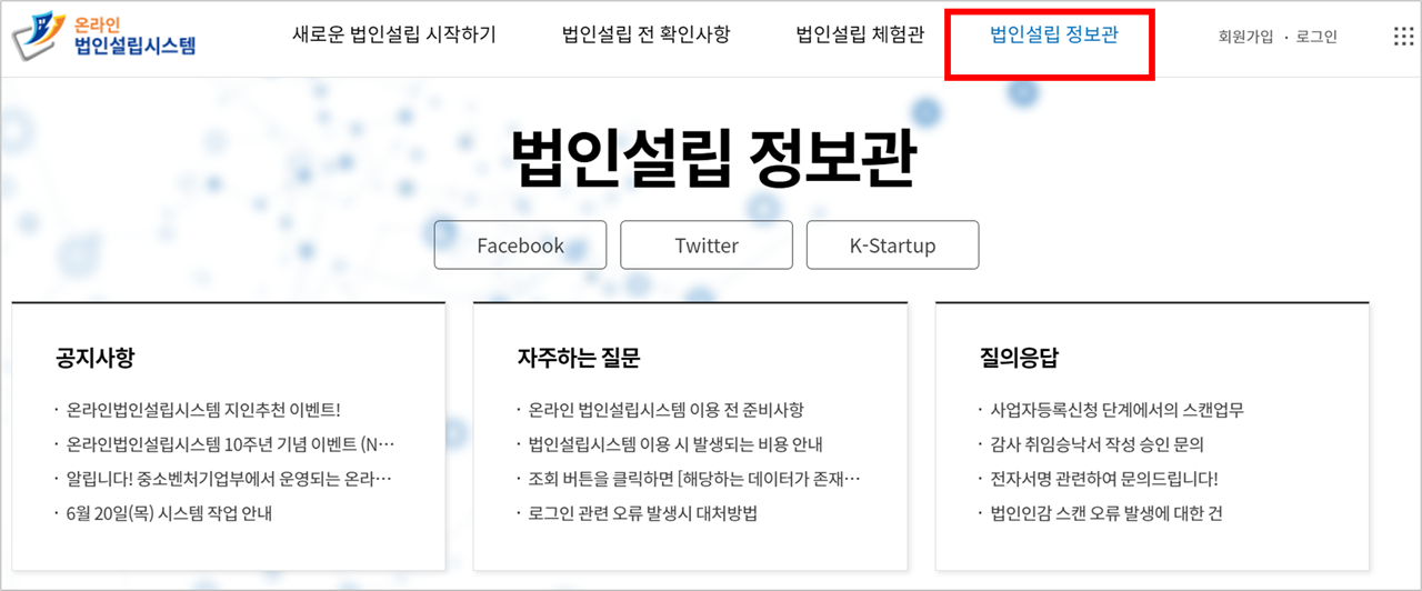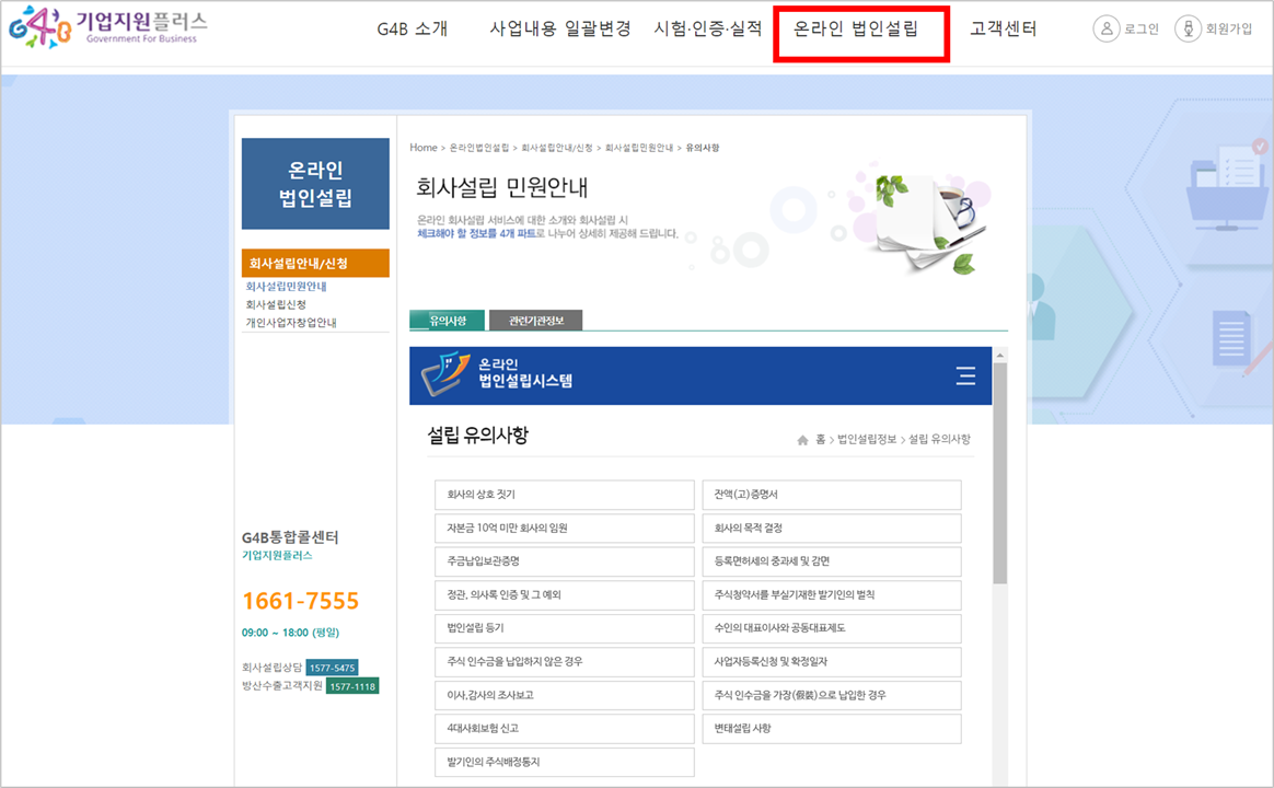 중소벤처기업부에서 운영하는 '온라인법인설립사이트'입니다.