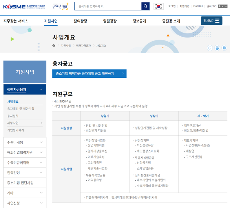 정책자금융자의 경우, 기업의 성장단계와 정책목적에 따라 신청이 가능합니다.