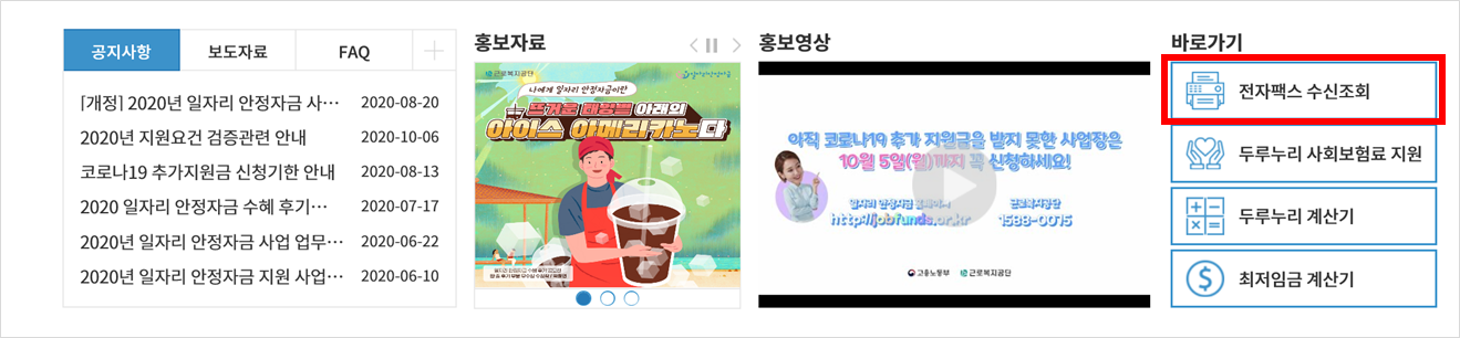 ④ 전송한 팩스의 수신여부를 확인하고 싶다면, 일자리안정자금사이트의 전자팩스 수신조회를 통해 확인할 수 있습니다.