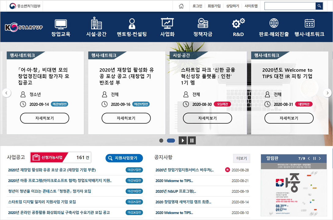 아래 다른 사이트를 모두 체크하실 수 없다면, Kstartup만이라도 참고해 보시기 바랍니다.